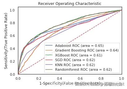 过采样SMOTE逻辑回归、SVM、随机森林、AdaBoost和XGBoost对不平衡数据分析预测