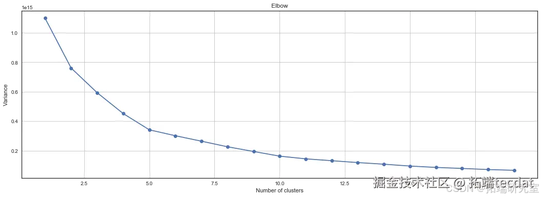 因此,我们的数据可能属于 2 个以上的类,因为在聚类 = 2 时,方差似乎有点偏离。