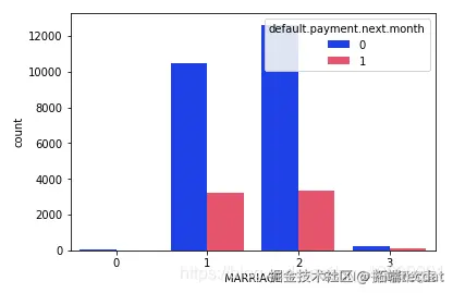 可以明显看出,那些拥有婚姻状况的人的已婚状态人的默认拖欠付款较少。