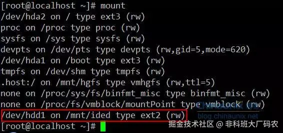 对于ext2/ext3文件系统来说数字签名Magic signature都是0xef53,如果不是那么它一定不是ext2/ext3文件系统。这里我们可以看到,我们的/dev/hdd1确实是ext2文件系统类型。