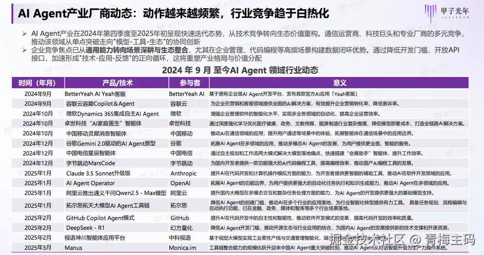 - 中国力量:DeepSeek、BetterYeah、卓世科技等厂商通过性价比和场景化优势,引领全球 AI Agent 普惠化浪潮。