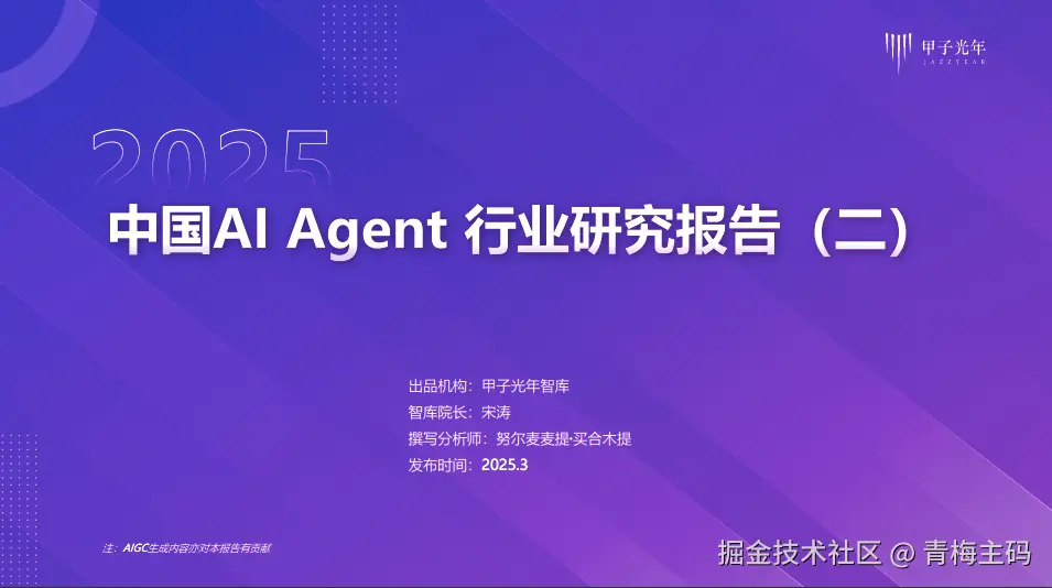 甲子光年最新发布的《2025中国 AI Agent 行业研究报告》指出,大模型的突破、算力的普惠化以及场景化应用的成熟,正在推动 AI Agent从“工具附庸”升级为“智能协作者”,甚至“数字员工”。这场变革不仅关乎技术迭代,更是一场生产关系的重构。