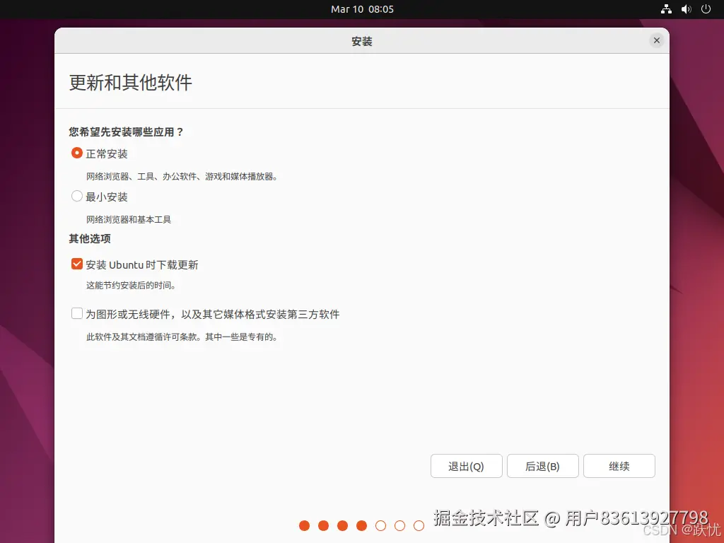 13.默认选择正常安装,如果希望节省资源,可以选择最小安装,在使用过程中再安装需要的工具