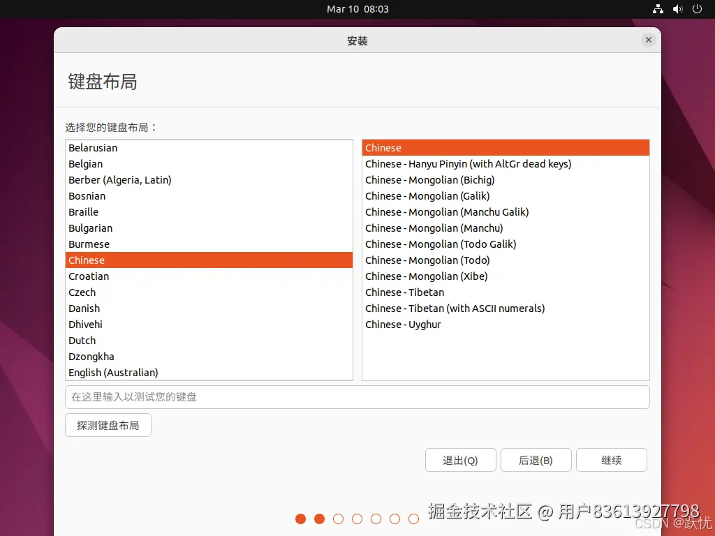 12.选择键盘布局,一盘默认即可,如果键盘按键布局特殊处理过,需要点击左下角进行探测键盘布局