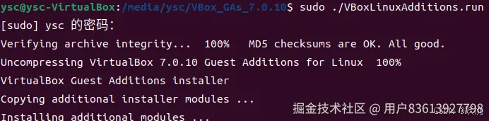 (4)执行增强功能的安装脚本文件,命令如下所示,密码即用户登录密码,注意输入的密码并不会显示出来。如果发现打印信息异常,请查看注意(1)