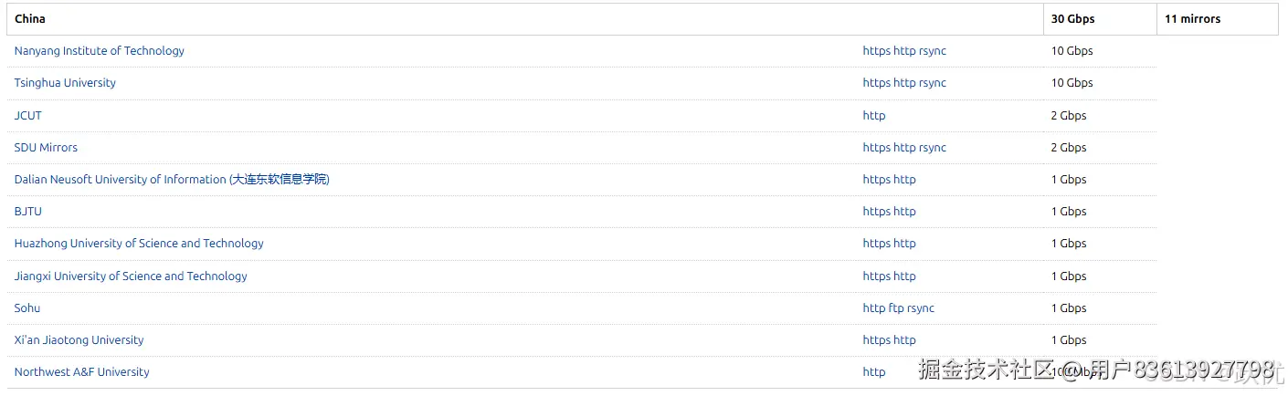 (1)找到china下的镜像源下载链接,如下图所示,可以任选其一,不同镜像源服务器对官网的同步状态可能不一致