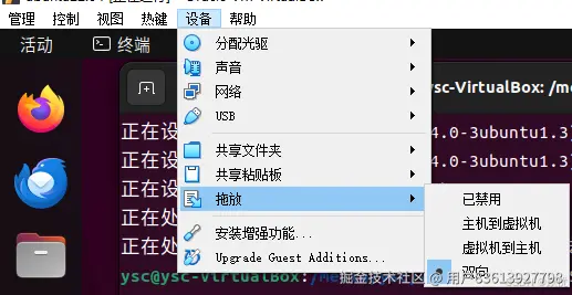 (2)选择虚拟机左上角的拖放的双向选项