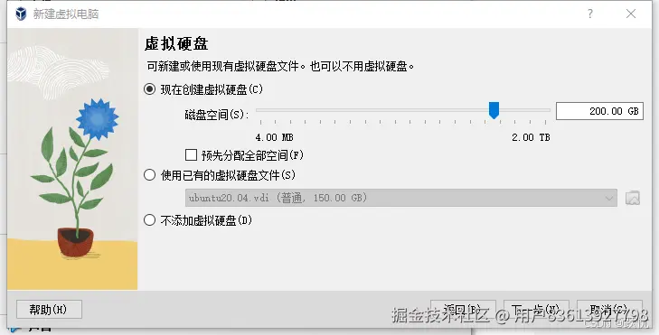 3.配置虚拟机磁盘占用大小,根据自己的需要和电脑的配置决定