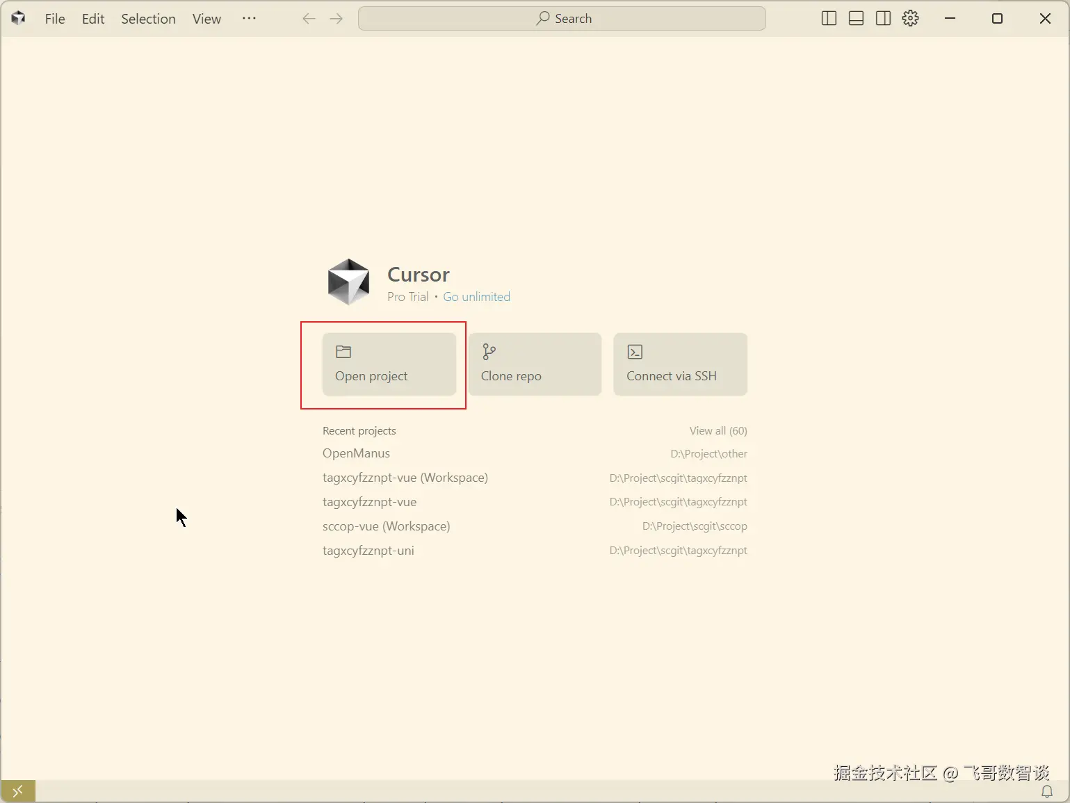 使用Cursor打开下载的项目。