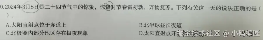 近我太太在考公学习,给我出了两道高中地理知识的题目,把我问的一头雾水,题目是这样的