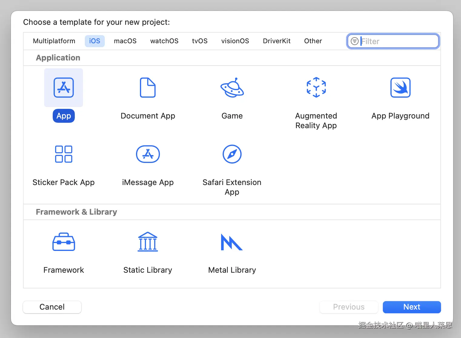 安装完 Xcode 后打开,新建一个iOS APP 项目,如果你和我一样之前从来没有开发过 iOS,这里可以开始尝试在 iPhone 真机或模拟器先跑一次原生的 Hello World 了