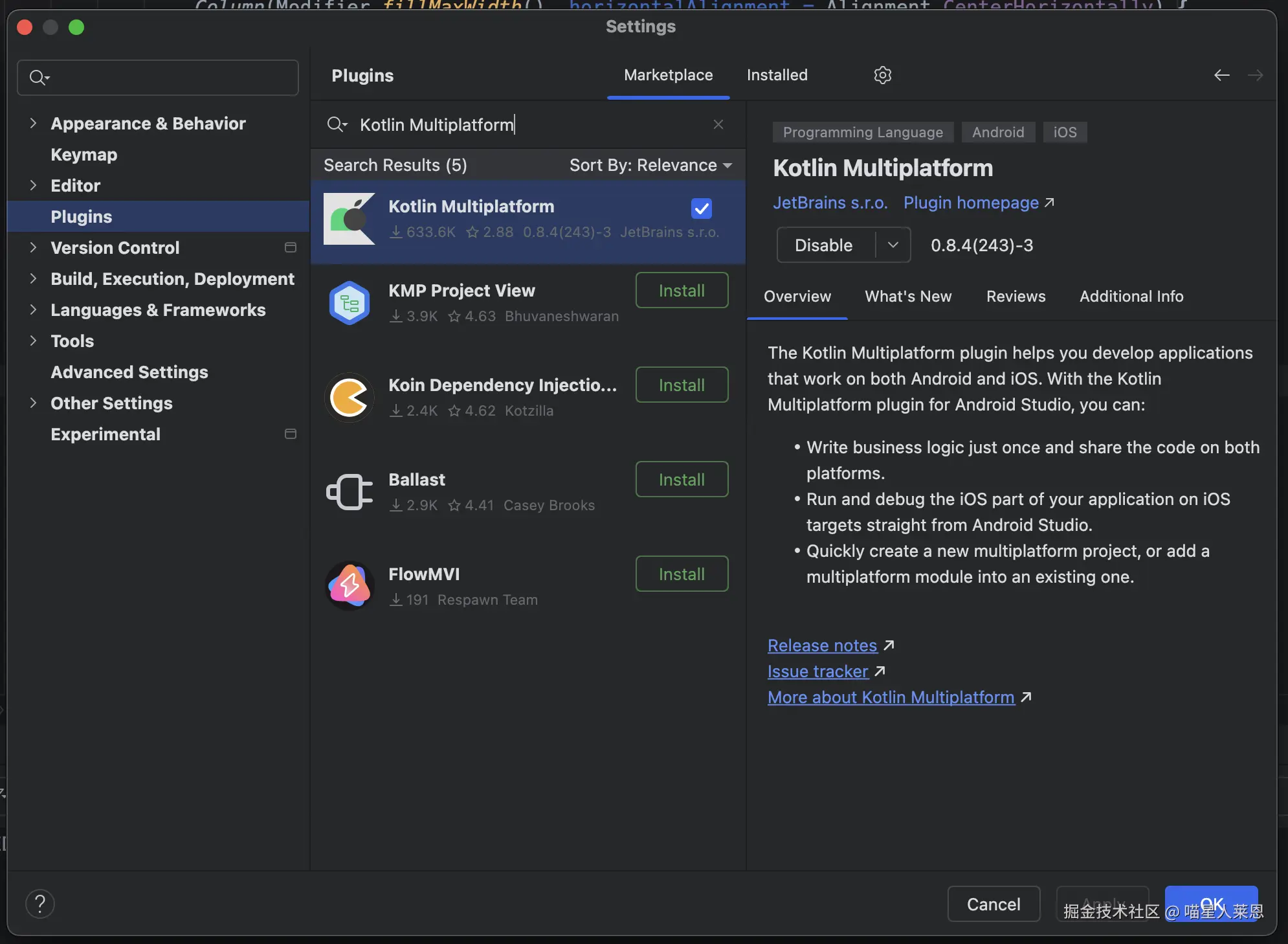 AS 自不用多说,能对 KMP 感兴趣的应该大部分都是 Android 开发了,插件市场里直接搜索 Kotlin Multiplatform 安装即可