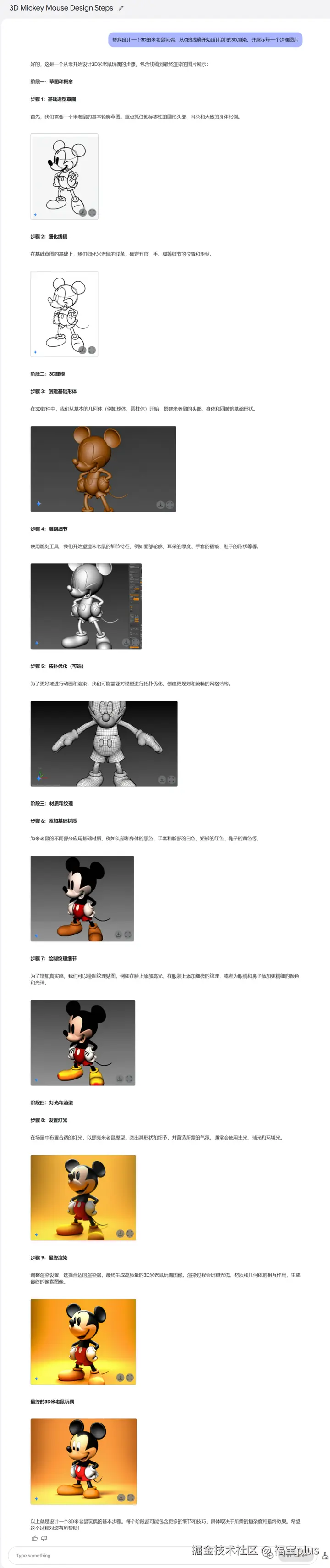1、设计一个 3D 的米老鼠玩偶,从线稿开始设计到 3D 渲染。
