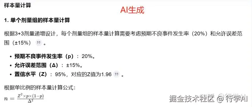 通过对Prompt的进一步优化,我们得到了AI给出的建议,总样本量需要105例,每个剂量组需要35例受试者,其中试验组和对照组各18例。这些建议能很好的为我们的临床试验方案提供参考。