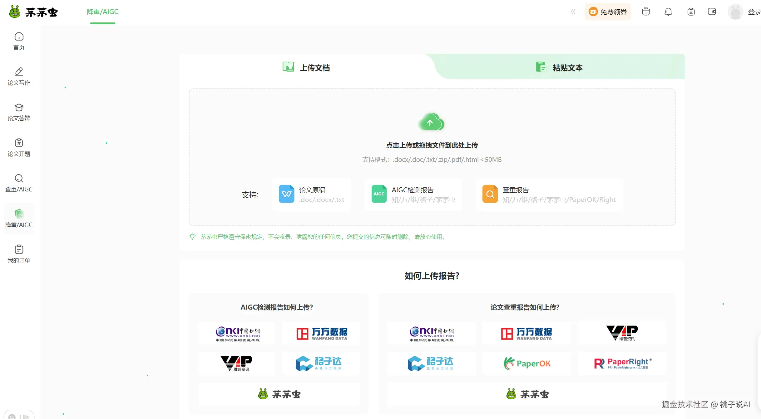 最后讲讲茅茅虫,它是一个集合工具式的论文平台,主要是做论文报告、论文开题、论文答辩这些方面的工作。但它也没忘了给自己添上降重和降AIGC的功能,就像是一个多功能的工具箱,你在论文相关的各个环节,都能从它这儿找到一些帮助,不管是刚开始的开题,还是最后要面对的答辩,它都能在降重方面给你出一份力,让你的论文在各个阶段都能保持一个较低的AI率。
