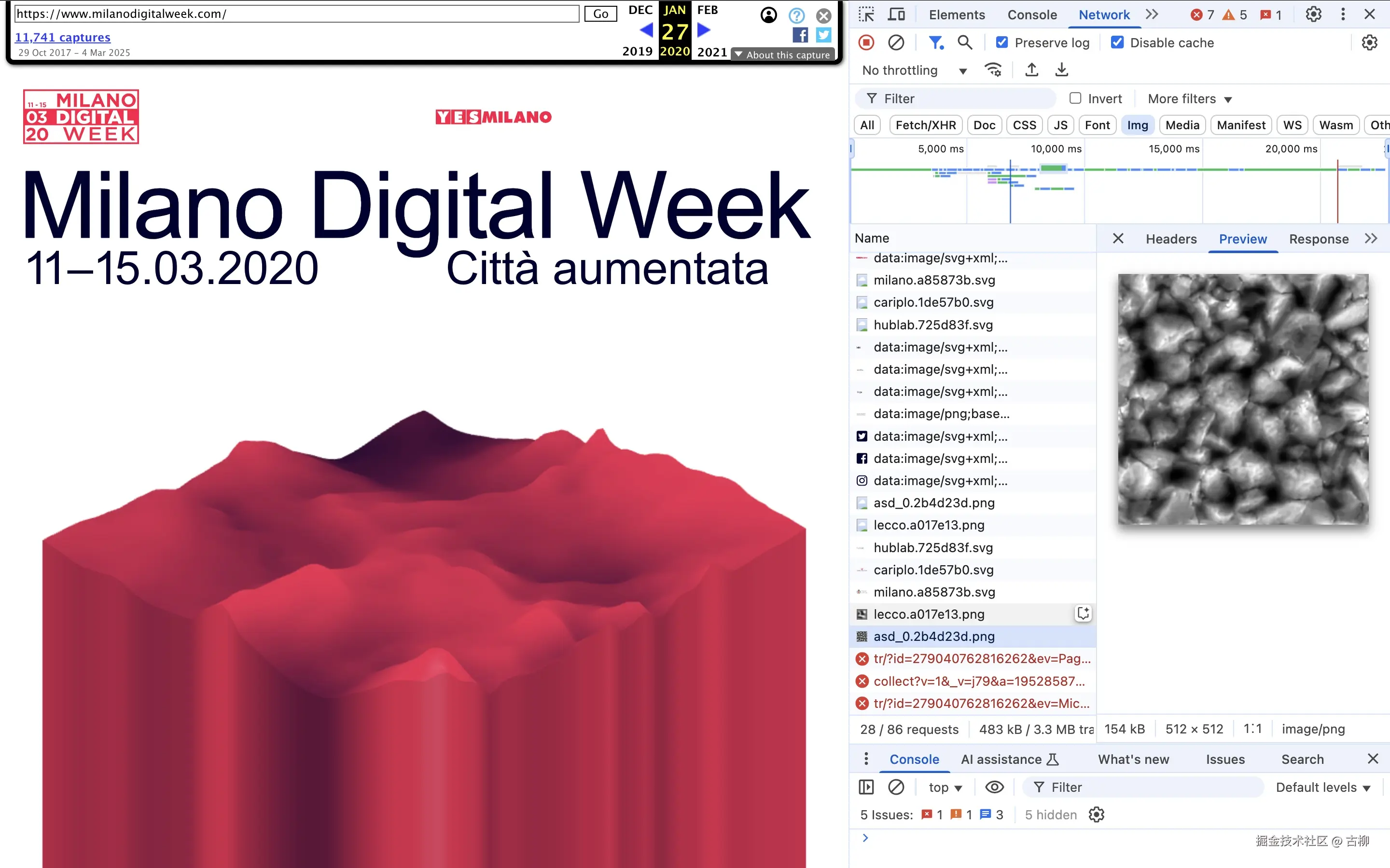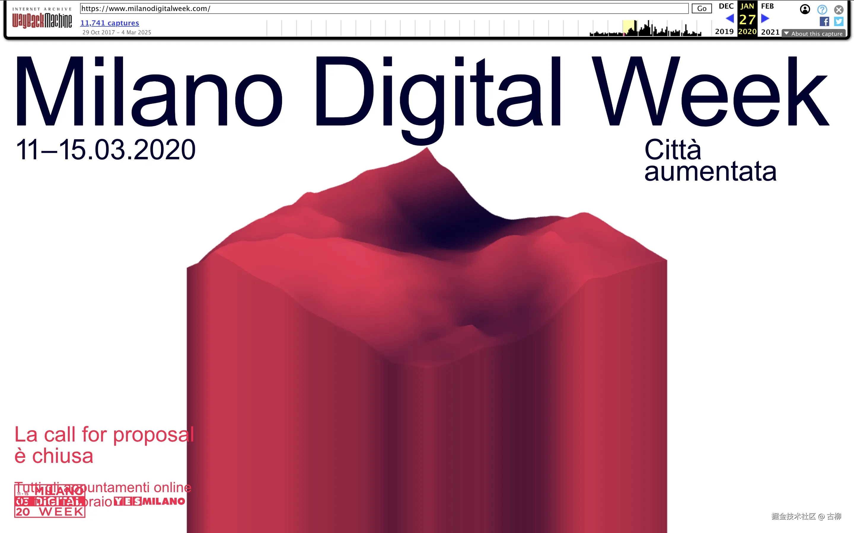 比如 Milano Digital Week 米兰数字周这个网站现在长这样,很多年前首页曾经有个类似“口红”的 Three.js Shader 效果。