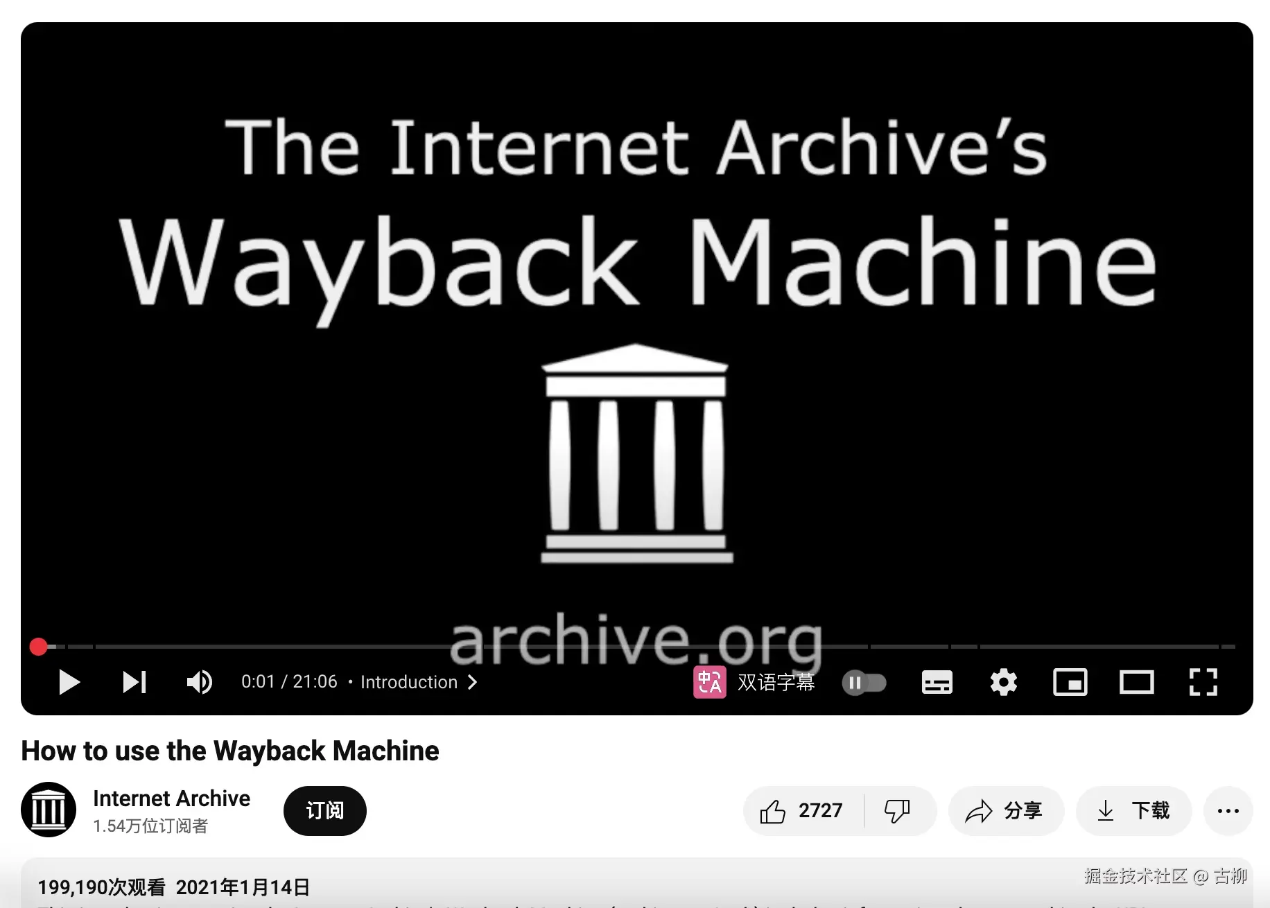 另外,网站时光机的功能远远不止文中提到的这些,感兴趣的可以看官方出的视频教程 How to use the Wayback Machine 进一步了解。