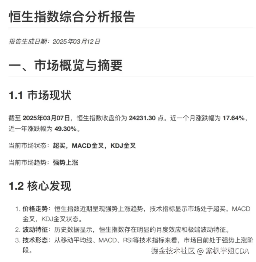 下面是一个使用国内某大厂的智能体做的一份自动化分析报告的示例,只要我们把报告框架设定好,把提示词调整好,那报告就直接生成了。