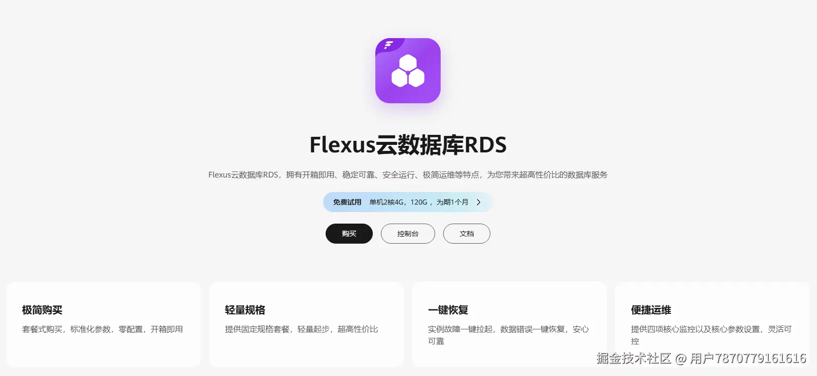现在正是最佳时机,限时特惠最低仅需30元起,轻松享受开箱即用的云数据库服务。无论是快速部署、自动扩容,还是强大的安全保障,Flexus云数据库RDS都能为您的企业提供全方位的支持。