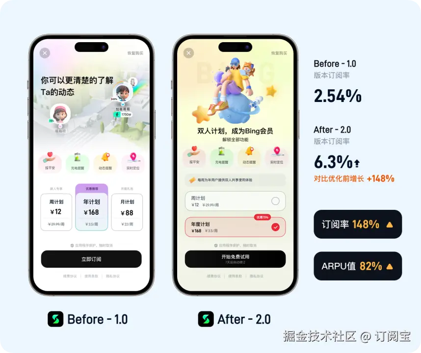 「订阅宝」是专注于APP订阅设计的工具,旨在帮助更多APP运营与开发者们实现订阅收入增长,提供基于实战层面的订阅页设计与改进意见,从而使得收入增长变得更加容易,使用「订阅宝」你将可以获得: