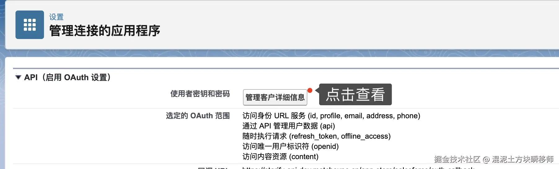 - redirect_uri=你的回调 URL:必须与 Salesforce 配置的回调 URL 一致。