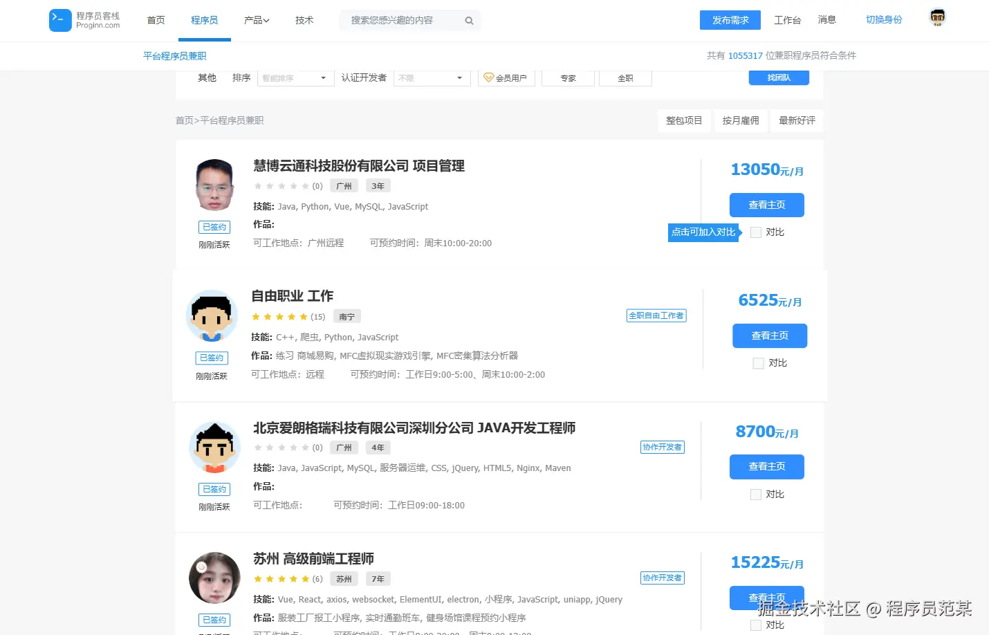 (程序员客栈签约成功程序员 截图)