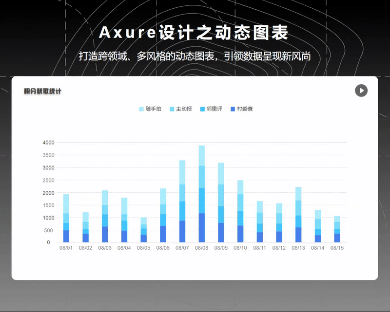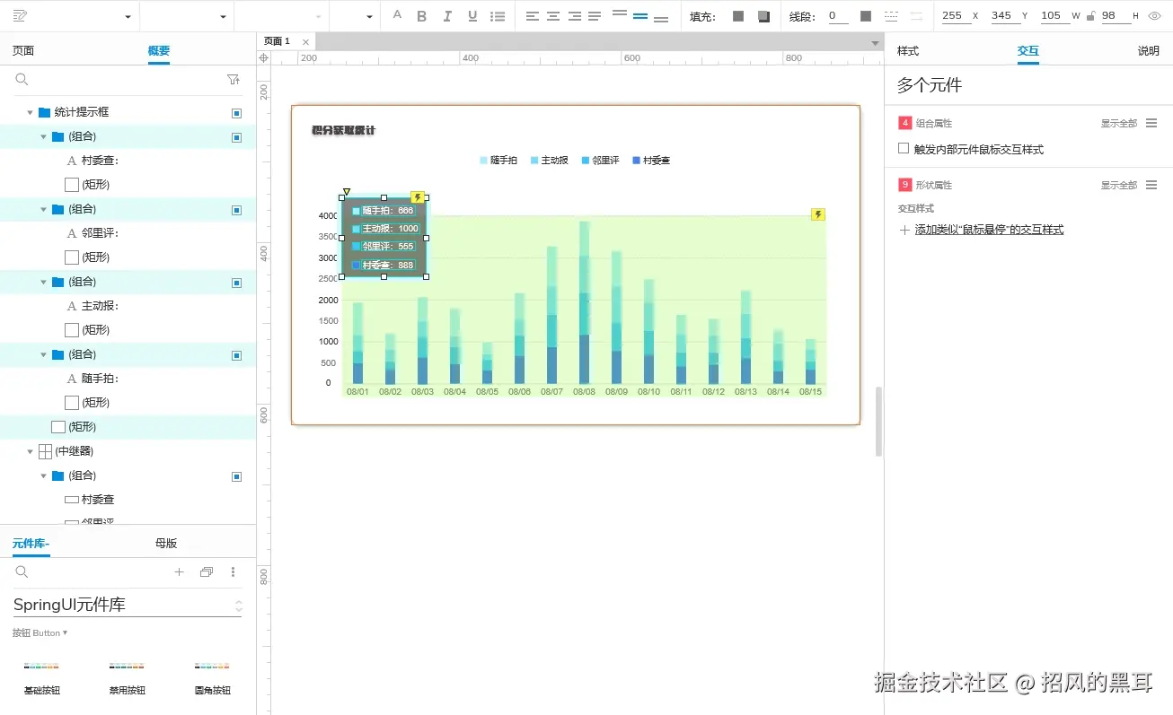 堆叠柱状图是一种常用的数据可视化工具,它通过在同一柱状图内堆叠不同类别的数据,以展示每个类别在总体中的贡献或占比。堆叠柱状图不仅可以帮助我们观察数据的总量,还能清晰地揭示各部分之间的关系和变化趋势。以下是一个使用Axure制作动态效果的堆叠柱状图的详细教程:
