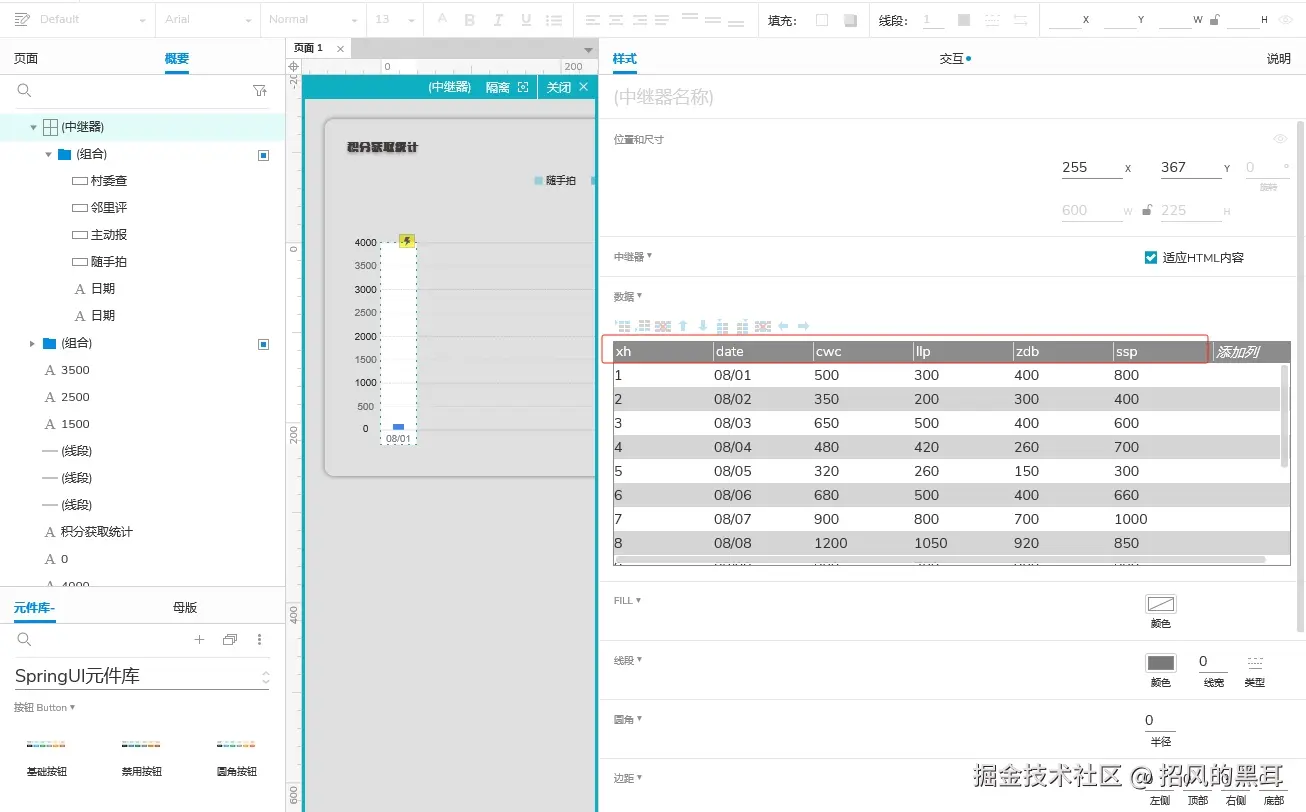 - 数据绑定:将中继器的每个矩形绑定到相应的数据列。