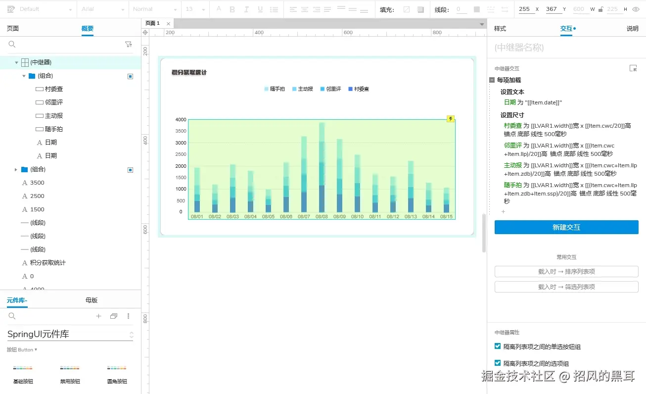 - 交互设置:确保数据能够动态加载到中继器中,根据数据变化自动更新柱体高度。