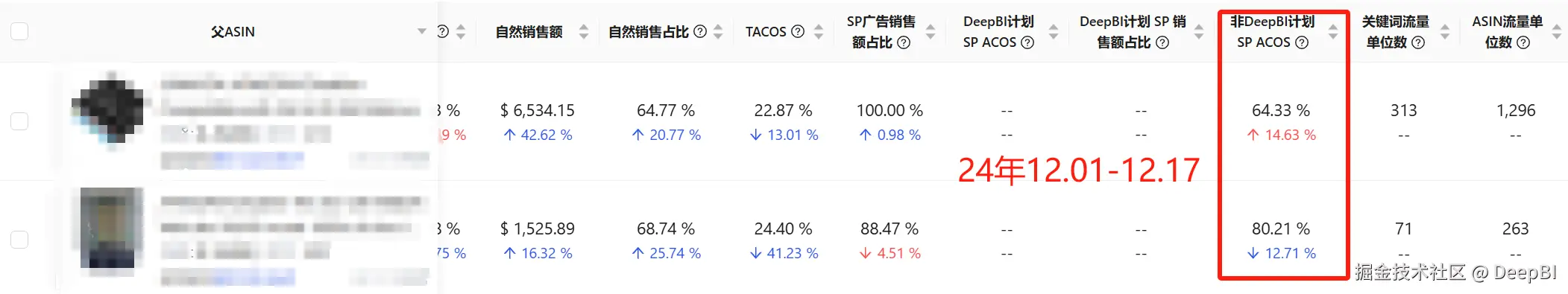 在未启用DeepBI智能广告优化前,该客户两个核心产品的广告ACOS分别高达64.33%和80.21%,广告投入产出比严重失衡,亟需专业解决方案扭转局面。