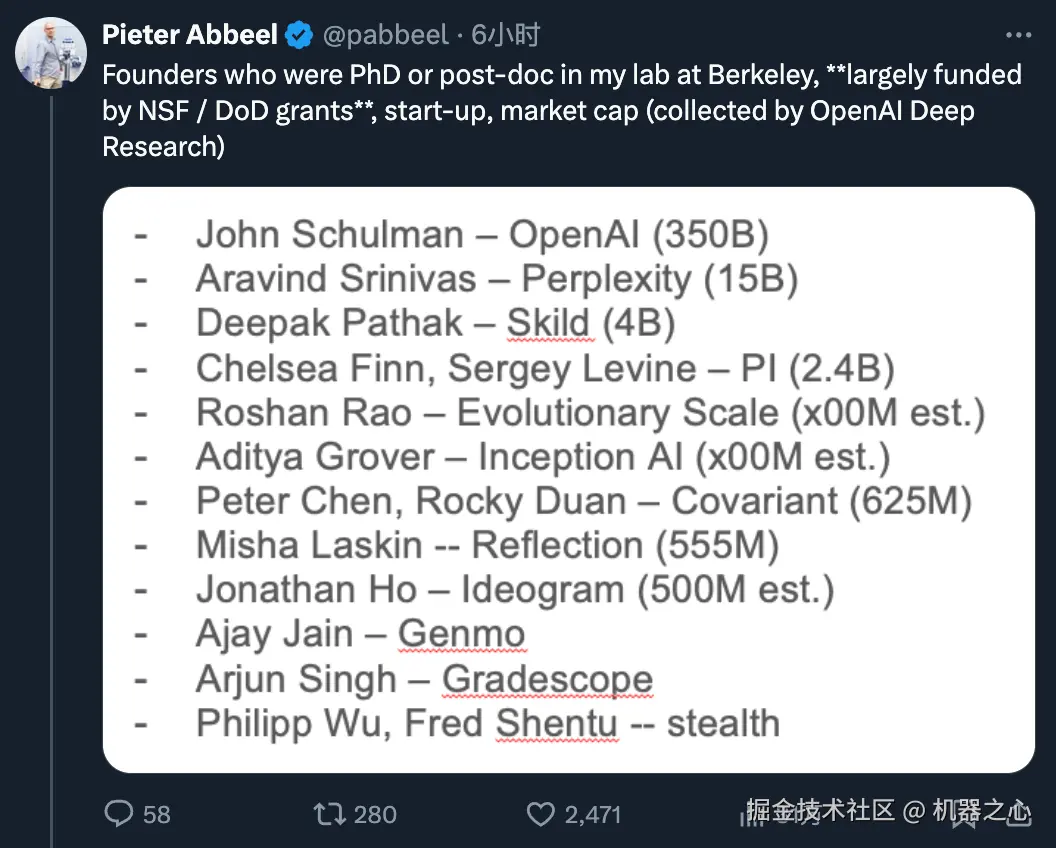 这些公司的名气都不小:OpenAI、Perplexity、Physical Intelligence、Inception AI、Reflection…… 相信你都听说过。