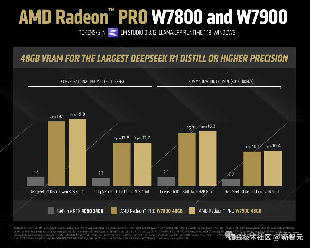 就在刚刚,AMD 放出了两款专业级 GPU——Radeon Pro W7900 和 W7800 的最新 DeepSeek-R1 实测。