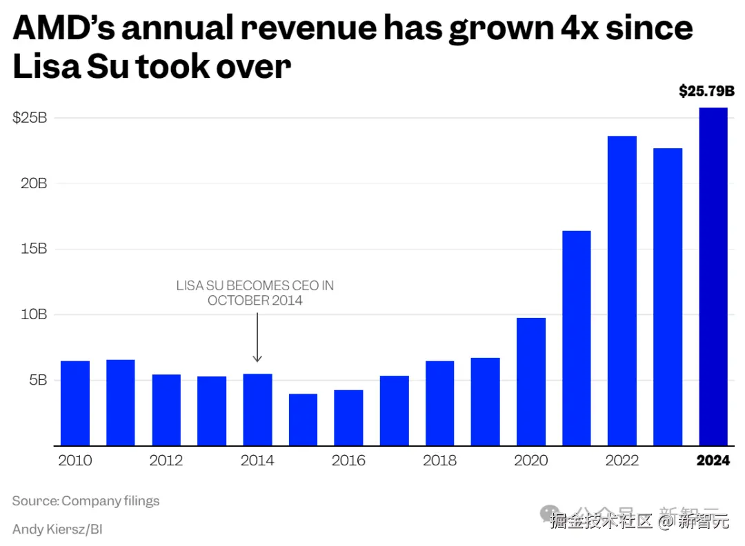 在苏姿丰的领导下,AMD 的年度营收实现了四倍增长