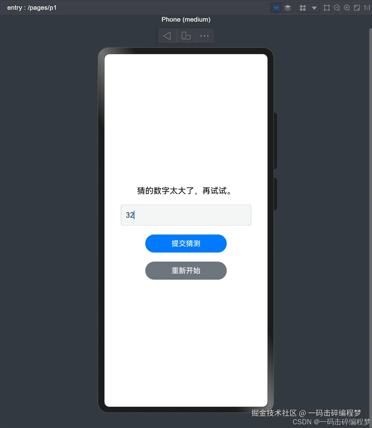 ArkUI 是华为为 HarmonyOS 应用开发提供的一套 UI 开发框架,支持声明式编程和组件化开发。本文将通过一个简单的猜数字游戏,帮助初学者快速上手 ArkUI 开发。我们将从零开始构建一个完整的应用,涵盖状态管理、事件处理、组件布局等核心概念。