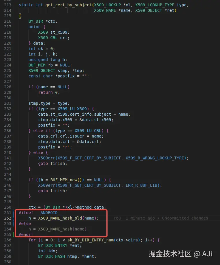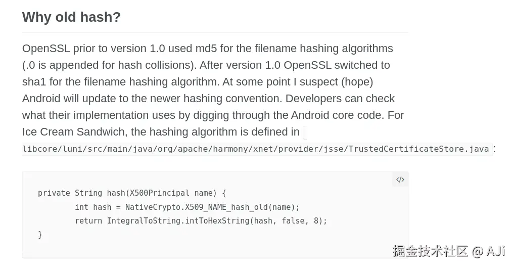 而Android上,系统的CA证书文件名是按旧方式使用MD5处理的(系统自带的openssl版本并不旧,只是默认如此处理),而在SDK放入的OpenSSL库,使用的是1.1.1版本,默认是使用新的方式来搜寻文件。