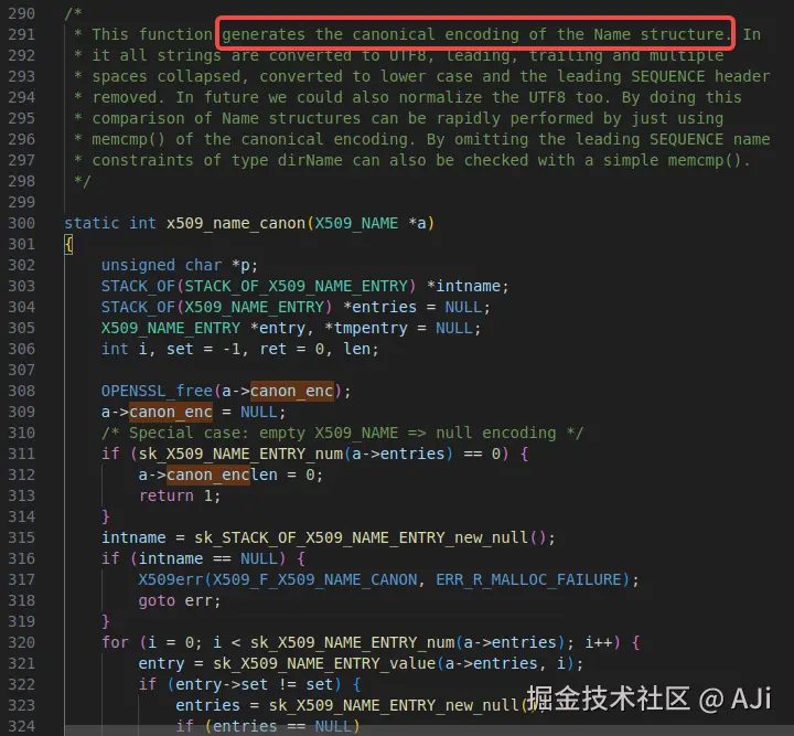 “canonical encoding”的内容可以用X509_name_canon()这个方法得到。