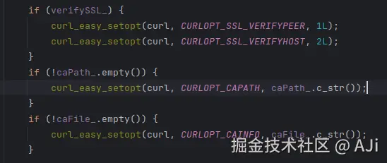 可以通过开启CURLOPT_SSL_VERIFYPEER来验证对端(服务端)的证书,CURLOPT_SSL_VERIFYHOST 用于控制是否严格验证主机名,验证服务器的身份是否与证书中的主机名相匹配。