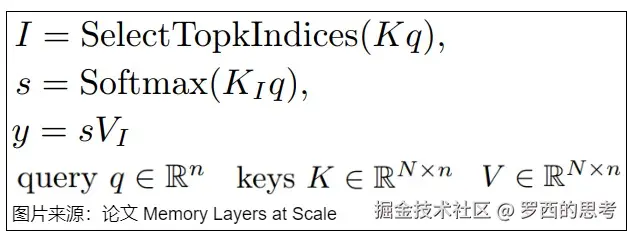 可训练的记忆层类似于注意力机制。给定一个查询,一组键,以及值。可训练的记忆层会输出值的软组合,该组合是根据 q 和相应键之间的相似性进行加权的。在使用时,记忆层与注意力层之间存在两个区别。
