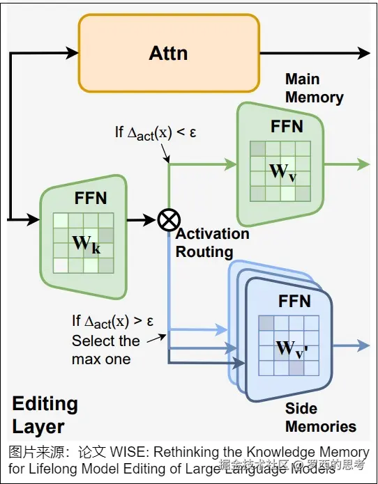 - 首先,记忆层中的键和值是可训练参数,而不是激活参数;