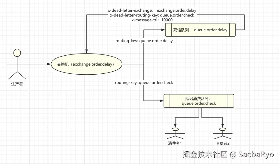 - 使用RabbitMQ的消息过期机制实现延时队列