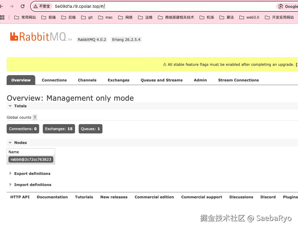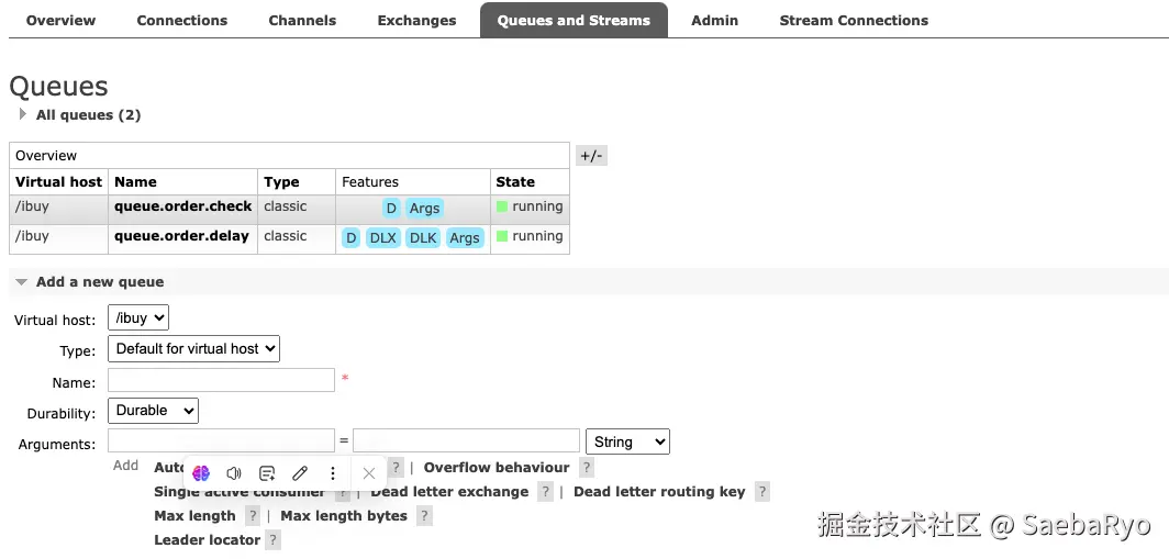 接着,就可以通过http://localhost:15672/#/queues管理你的rabbitmq
