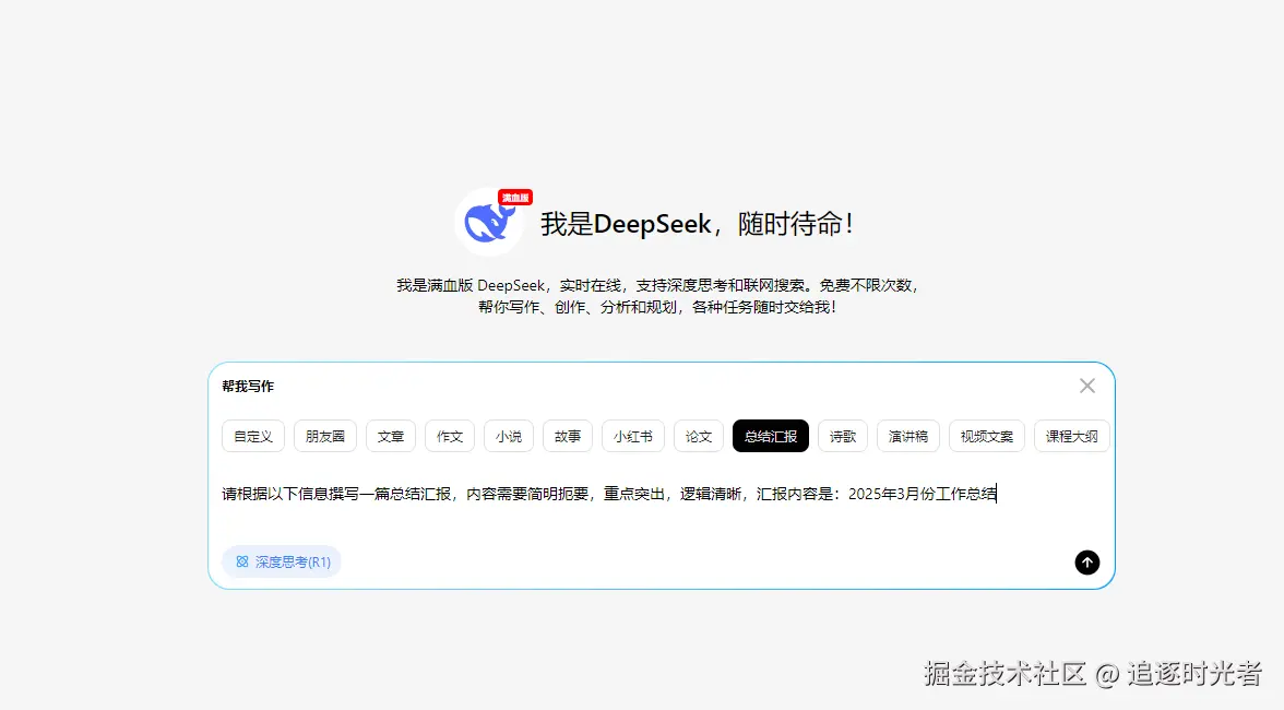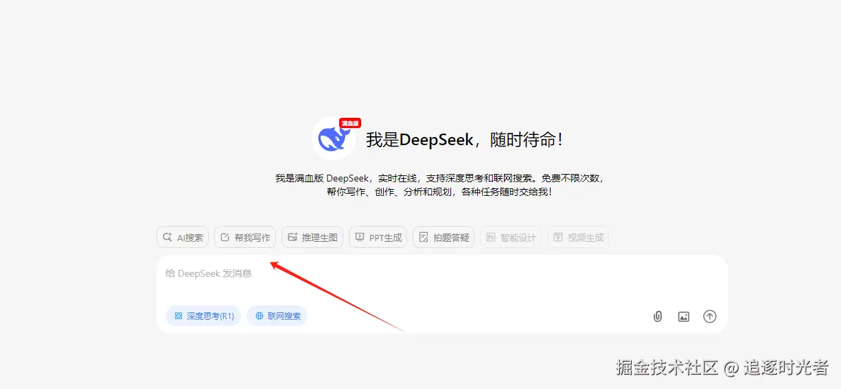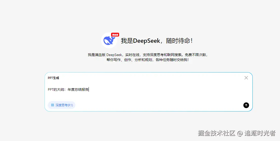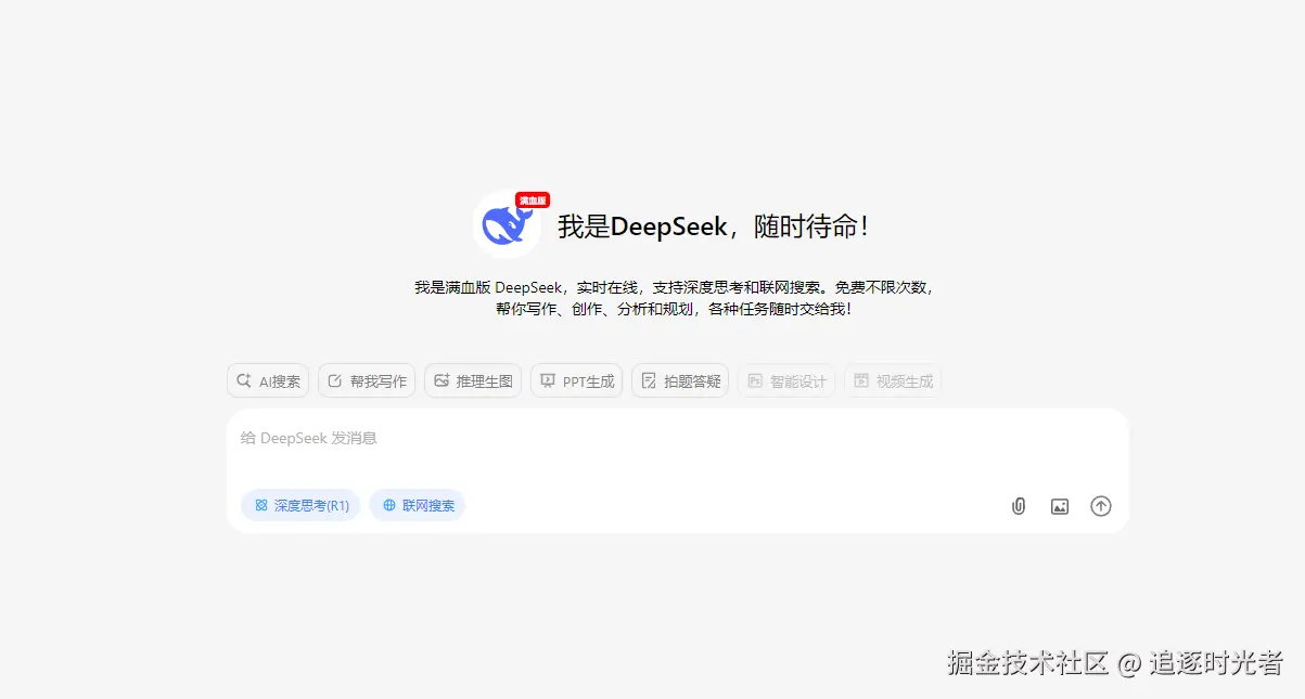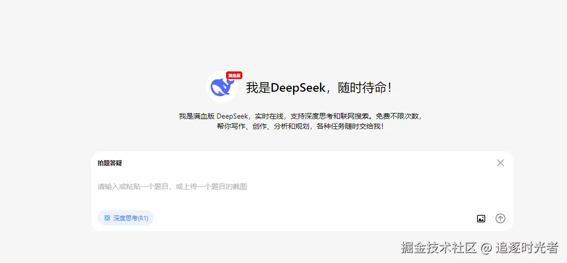 - 一个免费、快速、无限量使用的满血 DeepSeek R1 模型,支持深度思考和联网搜索!