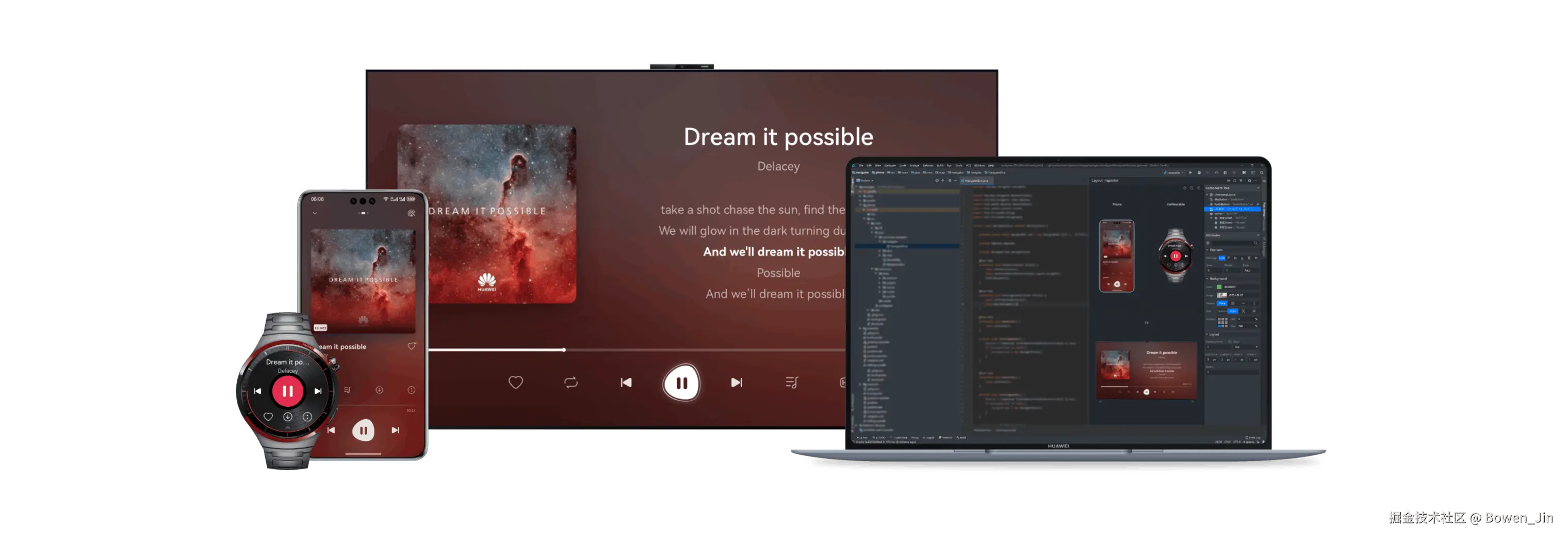 跨设备的分布式操作,打破设备界限,多设备联动,为你革新全场景协同体验。 典型场景有:媒体播控、应用接续、跨设备拖拽、跨设备剪贴板。
