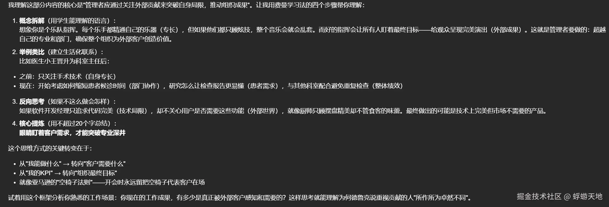 我在阅读《卓有程序的管理者》一书时,对以下内容不太理解,请你用费曼学习法来帮助我理解这部分内容。