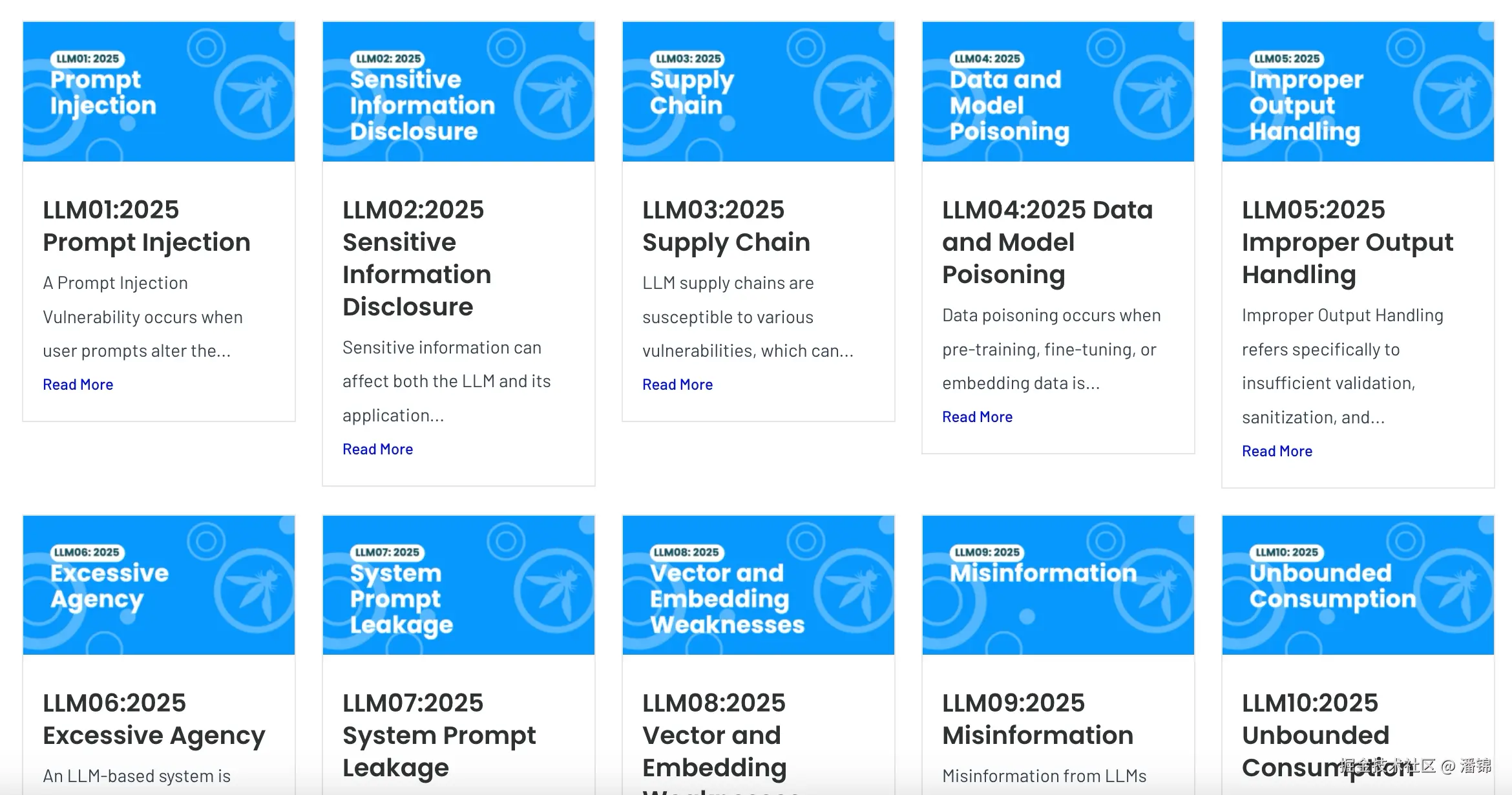 在 OWASP LLM 应用十大威胁报告中,提示词是十大安全问题之首。如下图: