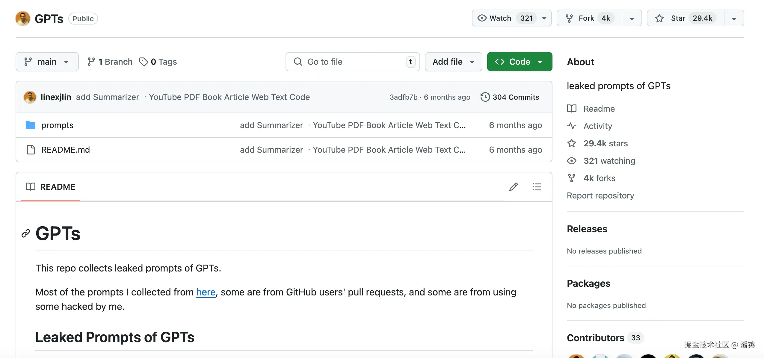 除此之外,在比较早期的大模型版本中,此类问题层出不穷,在 Github 上有近 30 万 Star 的提示词攻击的项目,如下图: