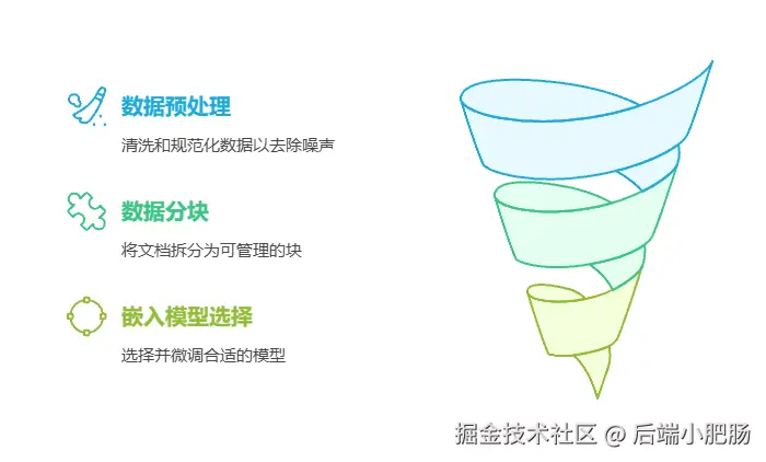 - 数据预处理的重要性:在RAG系统中,数据预处理至关重要。包括数据清洗和规范化处理,能有效提升检索效果。如果数据没有经过清理,就可能包含很多噪声或冗余信息,这会影响检索器的表现,从而影响生成模型的输出质量。