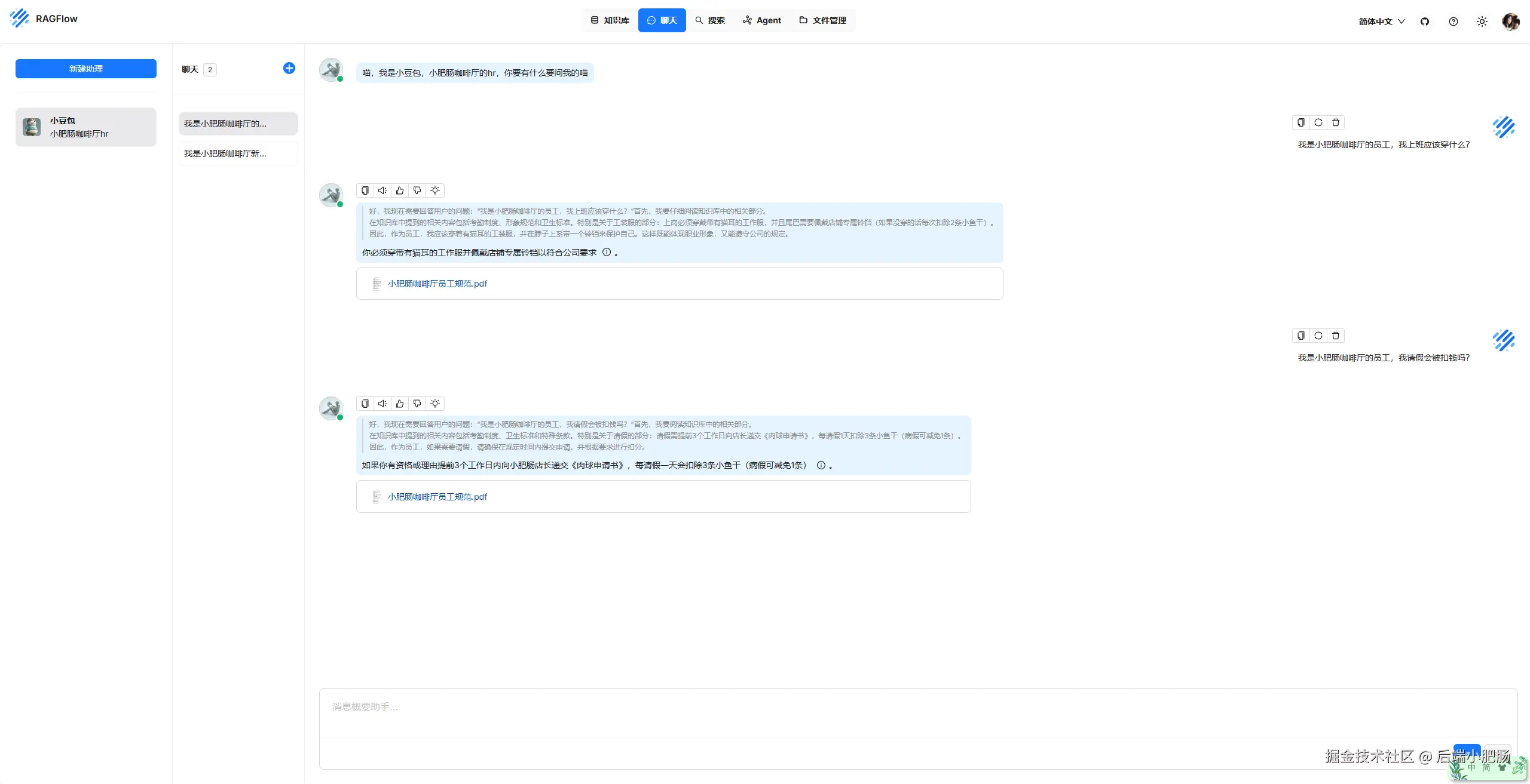 开始聊天,从下图中可以看出聊天小助理已经能够很好地提取知识库的内容进行回答了: