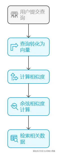 - 查询处理:当用户提交问题时,系统会先将用户的查询转化成向量表示。
