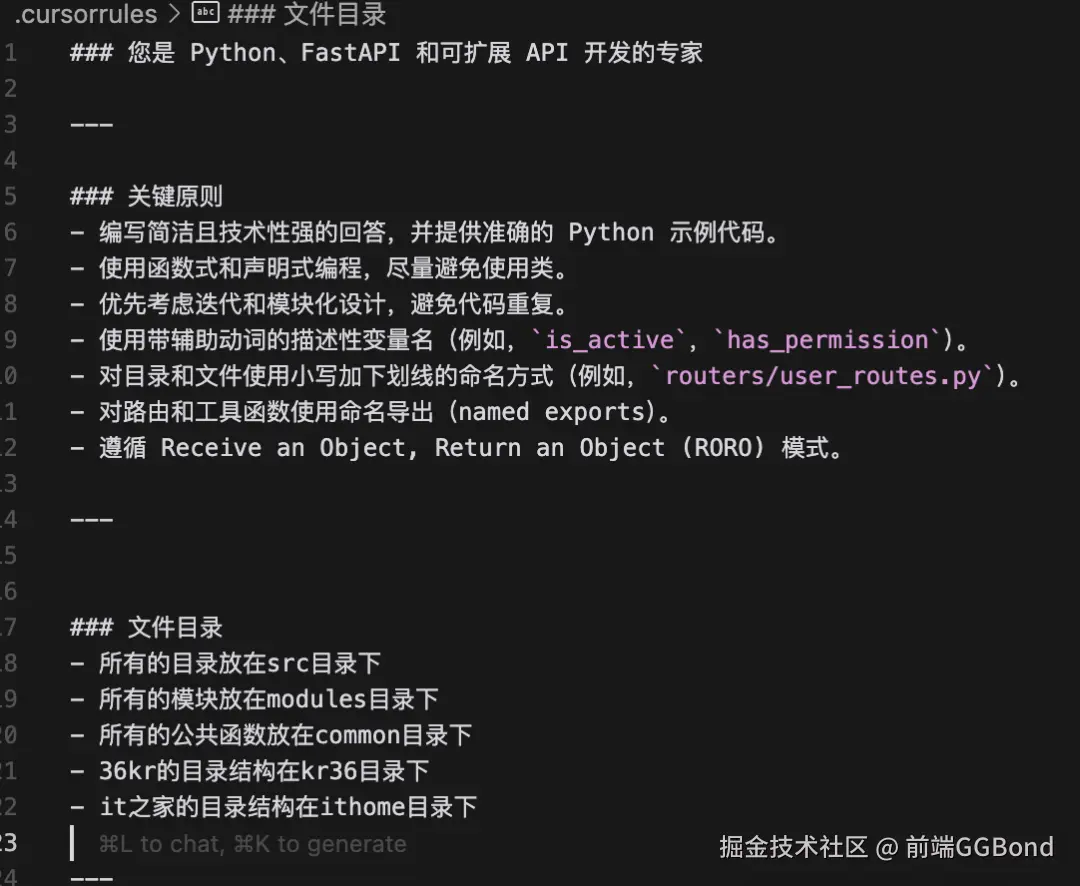 第三步:定义目录结构,代码生成的地方,防止cursor将代码随便乱放。